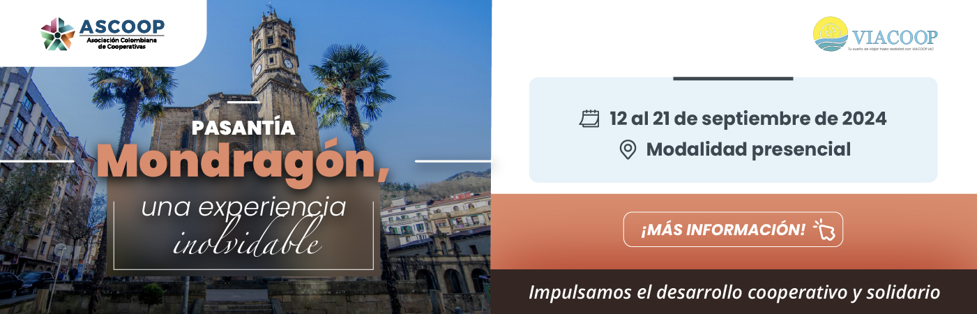 Entre el 12 al 21 septiembre del 2024, un grupo de cooperativistas viajará a España a conocer de cerca el modelo de Mondragón Corporación Cooperativa - MCC, grupo empresarial que se constituye en el más fuerte del país Vasco y séptimo en ese país, el cual está presente en el desarrollo de sectores financiero, industrial, de distribución y del conocimiento y ha contribuido a crear una cultura cooperativa que ha transformado la vida, la economía y la sociedad vasca, poniéndola como referente dentro de los mejores estándares de desarrollo humano del mundo.